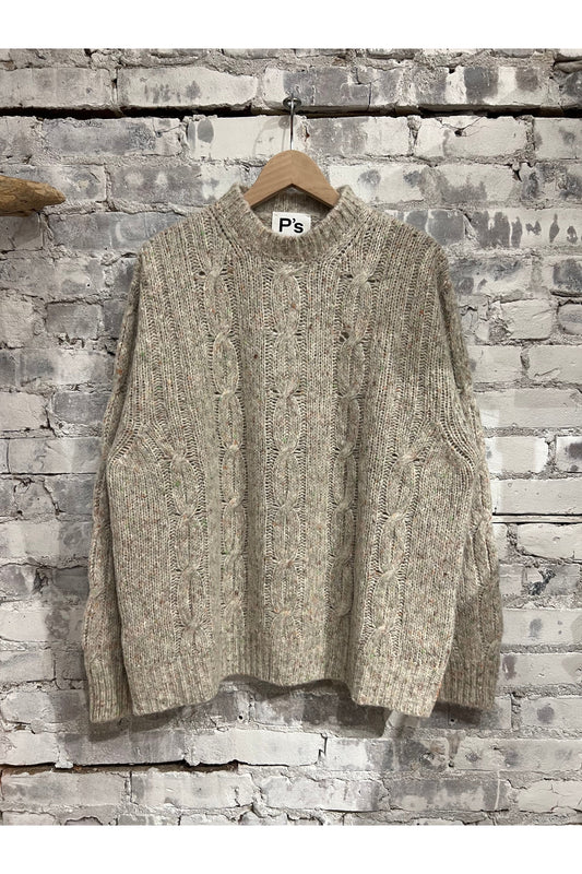 Over P's Cable Knit Donegal Sweater - Blue/Navy