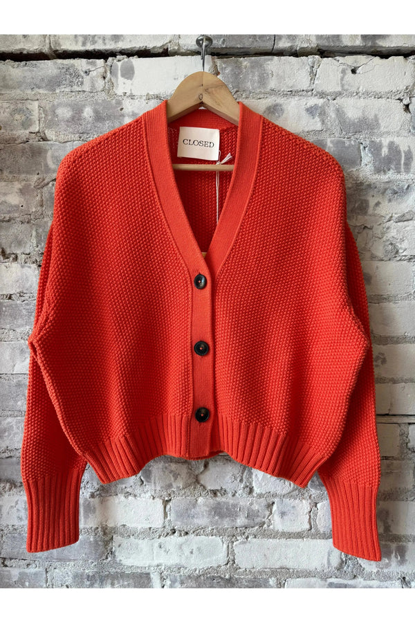 PATCH/POCKET CASHMERE LUX CARDIGAN - Burn Orange Mix