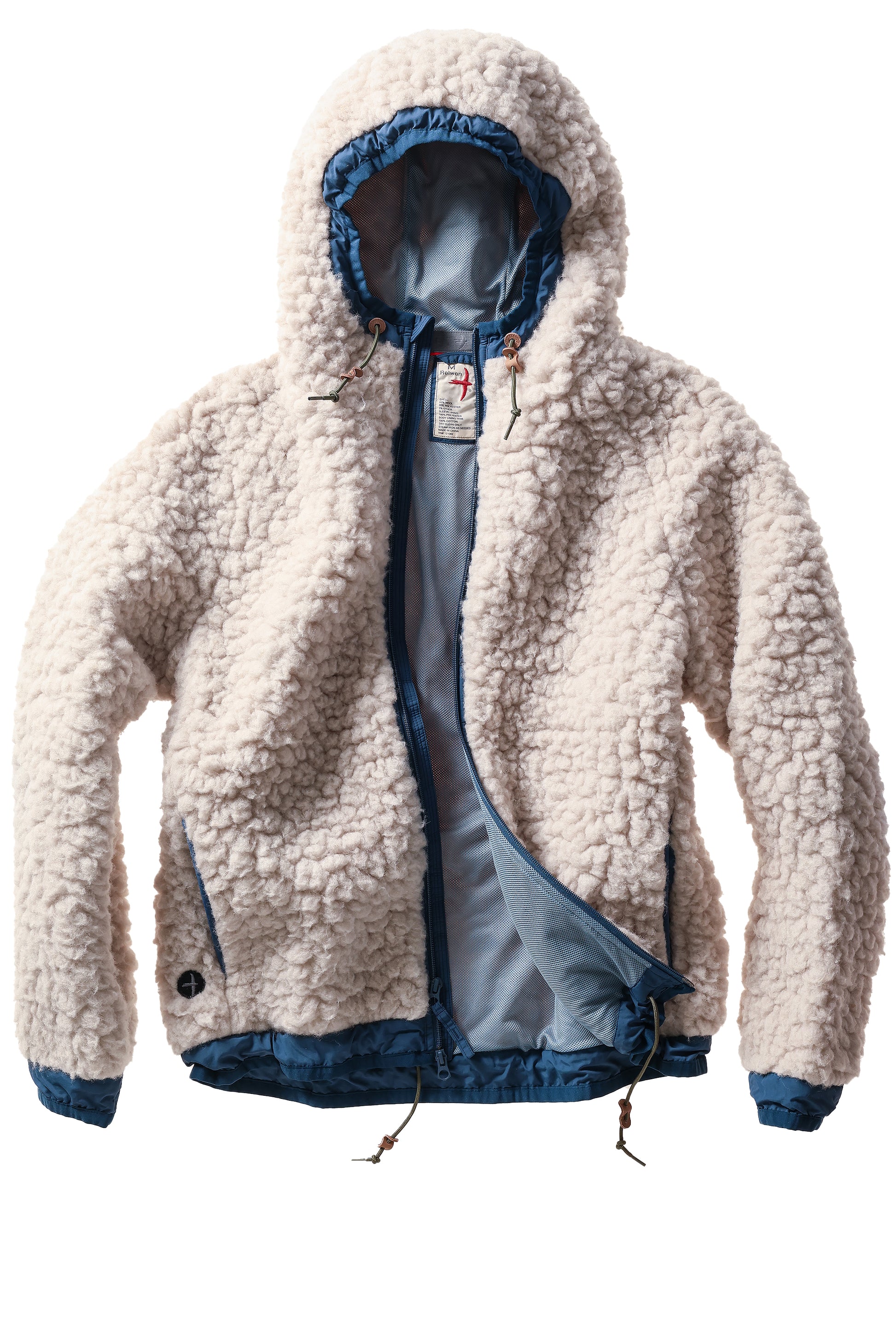 - Detail: Monster pile is one way of interpreting Relwen's latest creation. 30% wool content provides softness while also making the material just a bit more dimensional. Reminiscent of vintage pile fabrics once used for mountaineering, this latest knit jacket is as rugged as it looks but is super cuddly, and as fun a coat to wear as they’ve seen. Relaxed fit allows for easy movement and layering. 2-way zipper provides flexibility in venting or when seated. Discreet on-seam hand pockets and zippered chest pocket make complete.