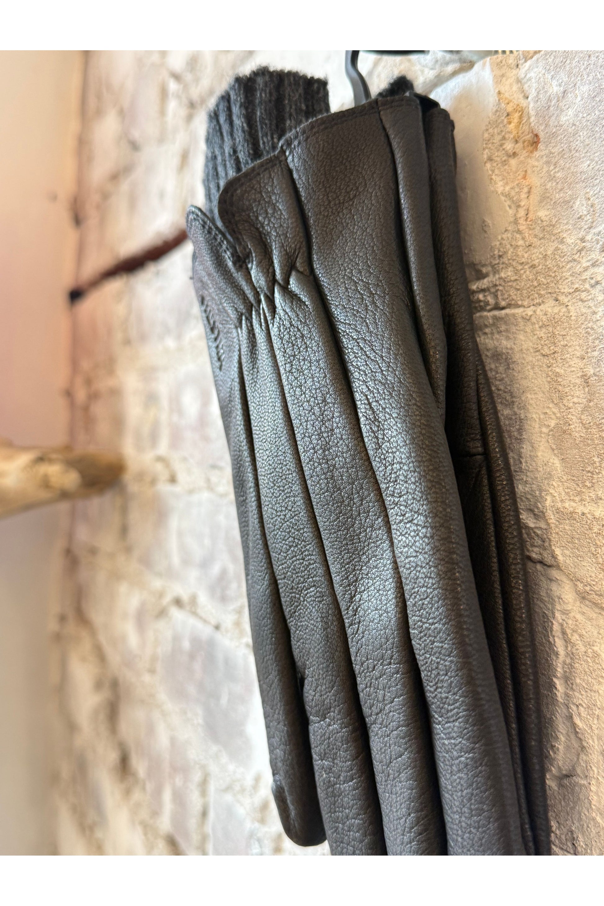 A slim-fitting, soft fashion glove in leather with a knitted lining. Beautifully designed details add character – such as decorative seams on the backhand and a practical eyelet at the inside wrist, making it easy to attach the pair of gloves to a bag or rucksack using the accompanying carabiner. The glove is stitched in hardwearing, supple goatskin, with a reinforced palm for extra strength. The knitted lining in a soft wool blend is comforting and warming on chilly autumn and winter days.