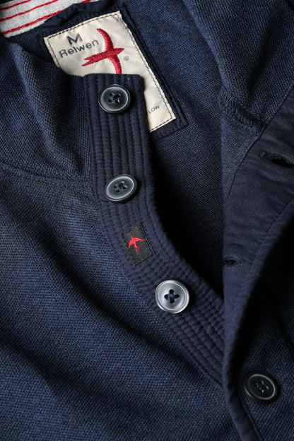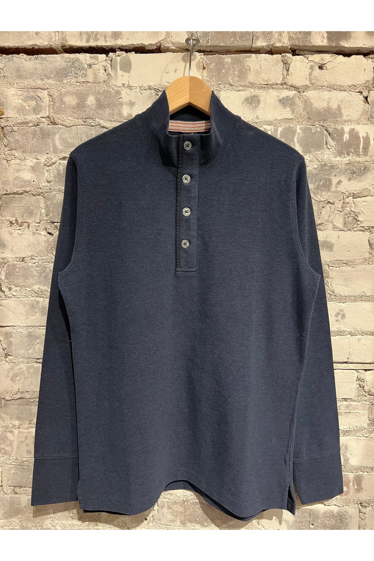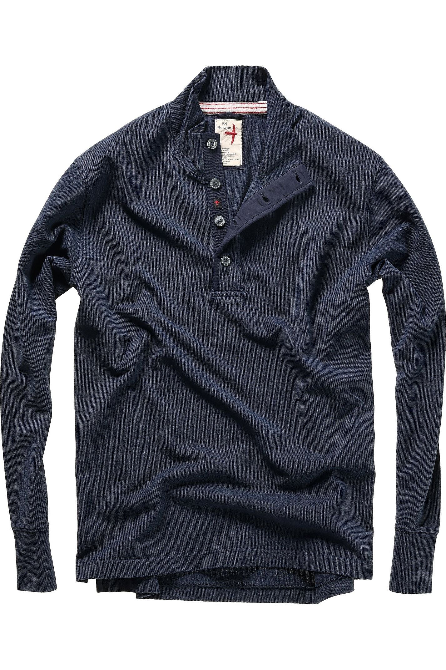Detail: Relwen’s fancy sweatshirt of the season, because there’s always need for do-it-all layering knit tops. Not built for the cold, but easily the type of mid-weight spring sweater that elevates their transitional dressing style--to the gym, work, or dinner. All-Cotton pique knitted fabric of mélange (heather) yarn provides a depth of color that simply looks more interesting. Layerable 4-button trapunto stitched placket of bound Cotton sheeting reinforces a quality of make that is the only way they do it.