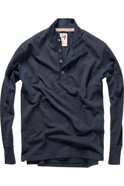 Pique Button Mock - Navy Heather