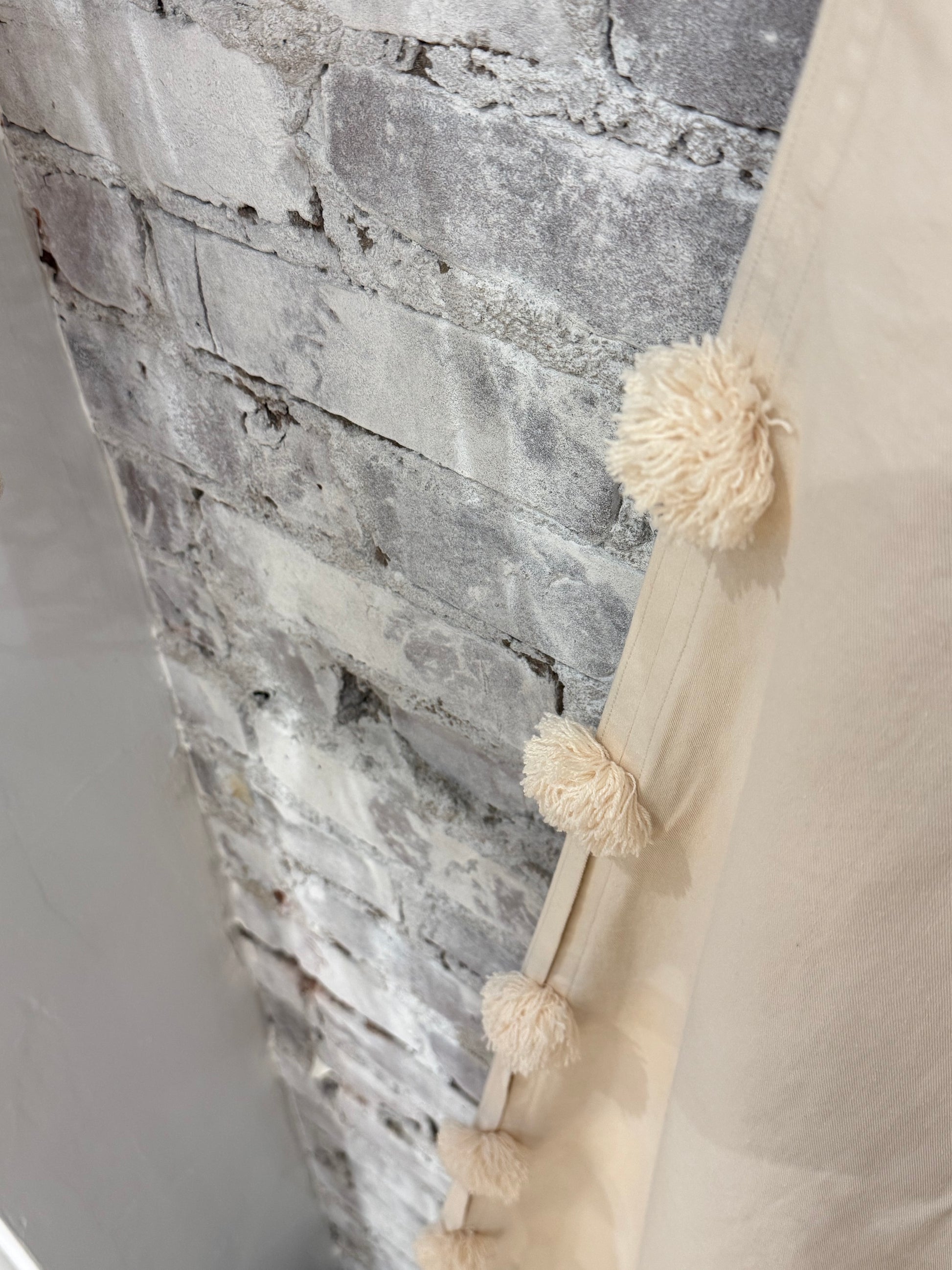 - Detail: Relaxed fit pants are decorated with cotton thread pom pom details at sides. Off-seam pockets at front. Fully lined with organic cotton lawn.