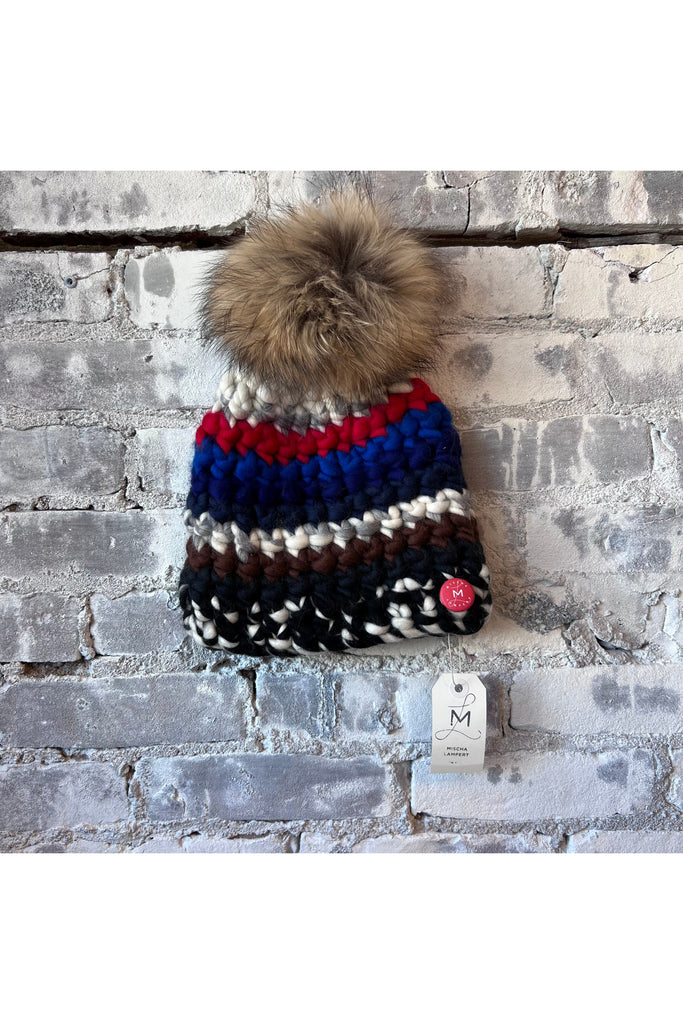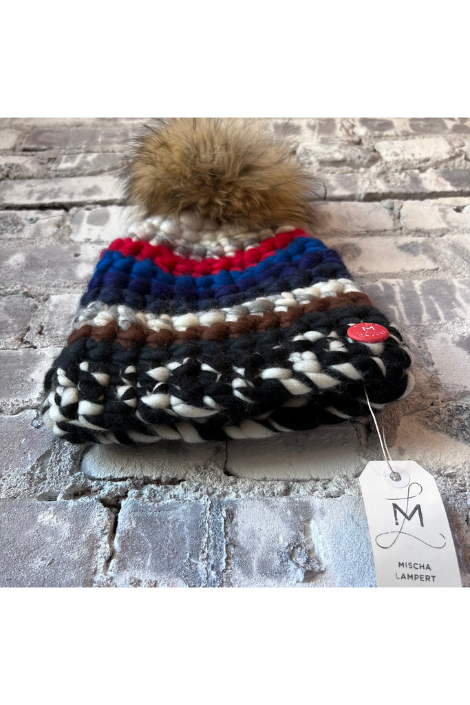Ski Beanie Stripe + Raccoon XL Pom