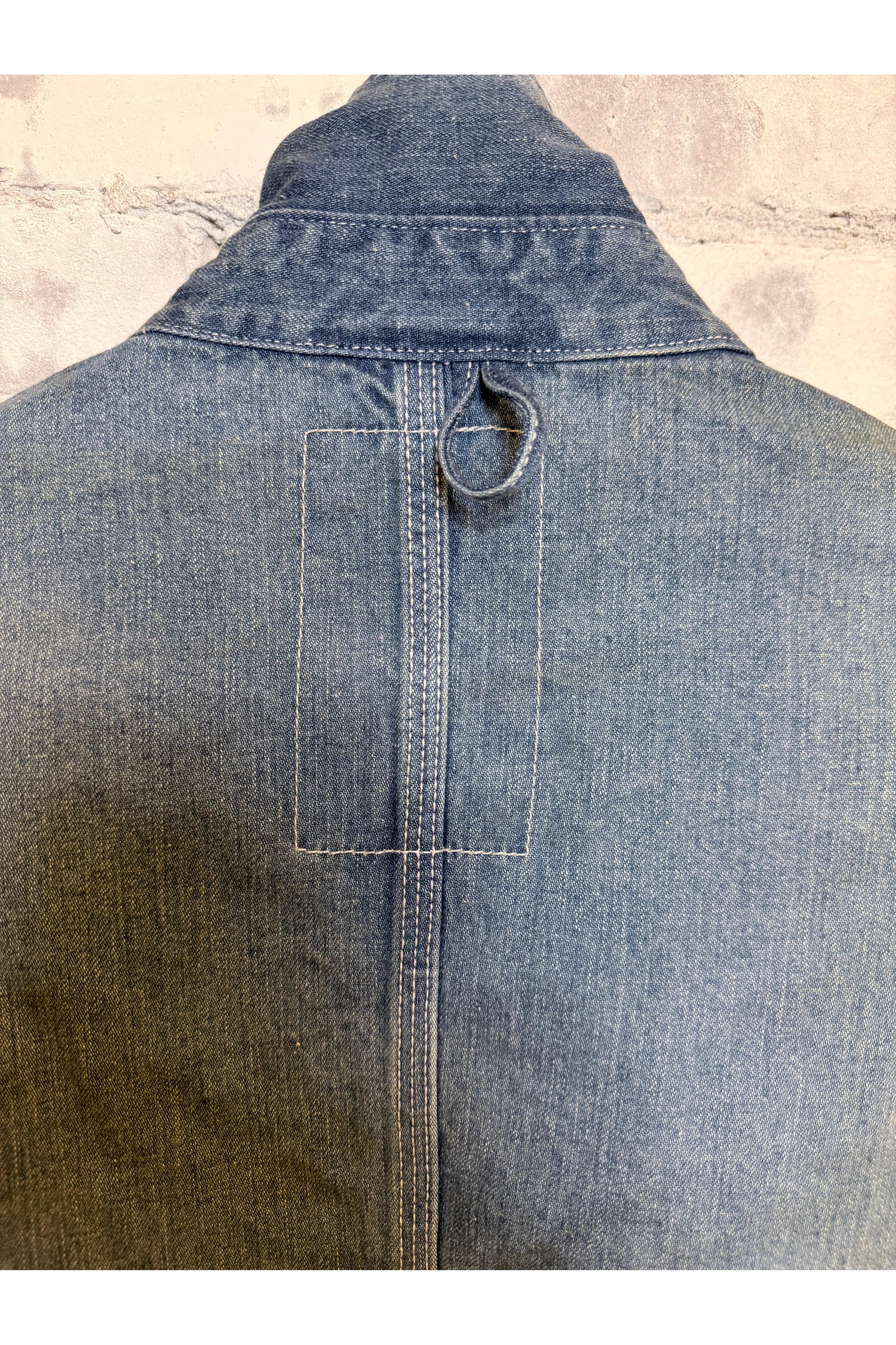Detail: A relaxed silhouette coverall with the image of a coverall with a chin strap from the 1930s. The strap is stored on the left front back, and when you open the front and wear it, if you stop the strap and the front button, you can wear it without the front opening.