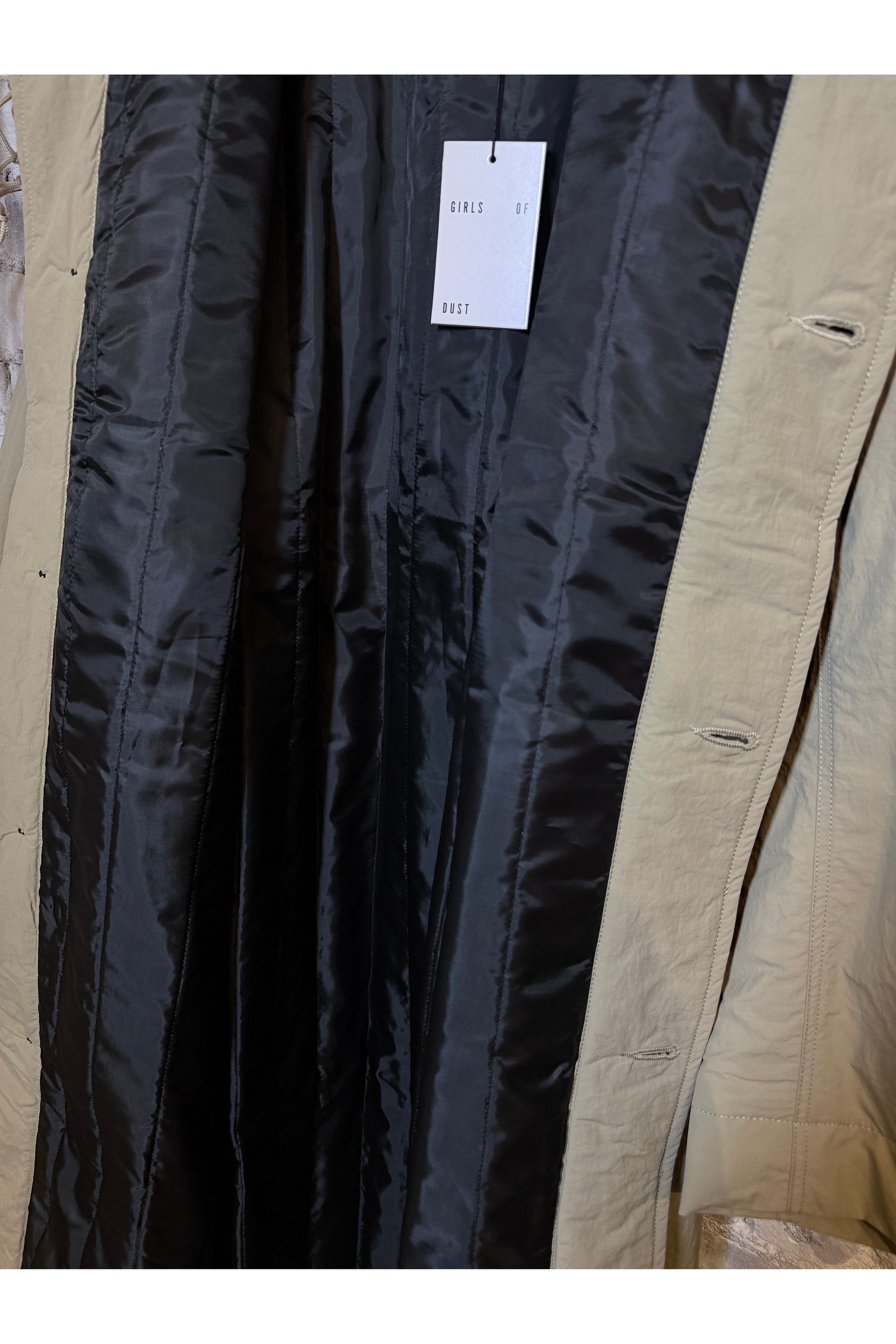 - Details: Already an office favourite at G.O.D, the Military Trench draws inspiration from traditional military outerwear and blends practical design with winter-ready functionality. Made from padded nylon for insulation and resilience, it includes a closable collar for extra protection, a Corozo button closure, and a waist belt for customizable fit and comfort. Its classic silhouette made to meet the demands of modern life.