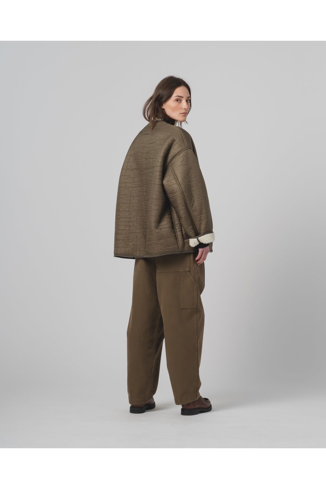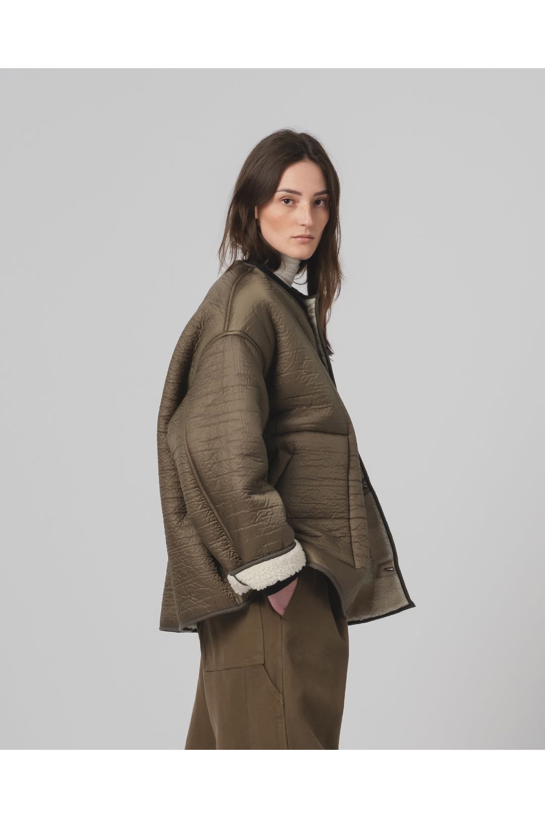 - Details: The Solar Jacket brings a fresh silhouette to G.O.D’s outerwear collection. Featuring a long silhouette, collarless design, and full reversibility, it offers two looks in one with an easy, oversized shape and relaxed, dropped shoulders. The button fastening keeps things simple, while the streamlined design adds warmth without the bulk.