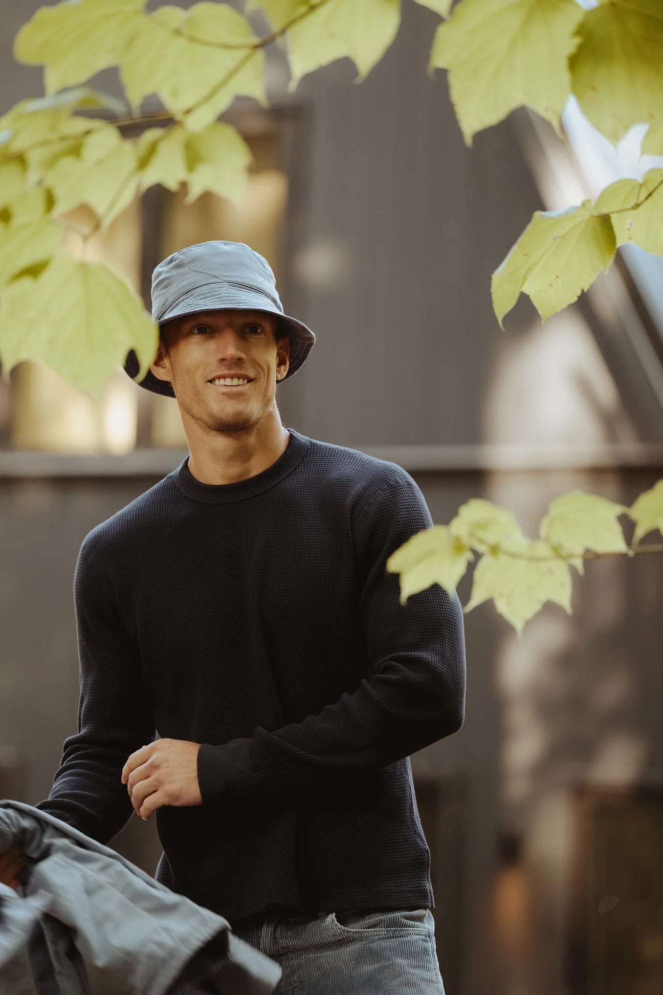 Detail: Modeled after the timeless thermal, SKU's long sleeve waffle crew is crafted from a mid-weight textural waffle quality, striking the perfect balance between breathability and coziness.